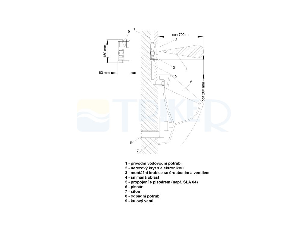 • reaguje na přítomnost osoby před pisoárem ve vzdálenosti max 0,7 m • od snímače po dobu delší než 7,5 s
