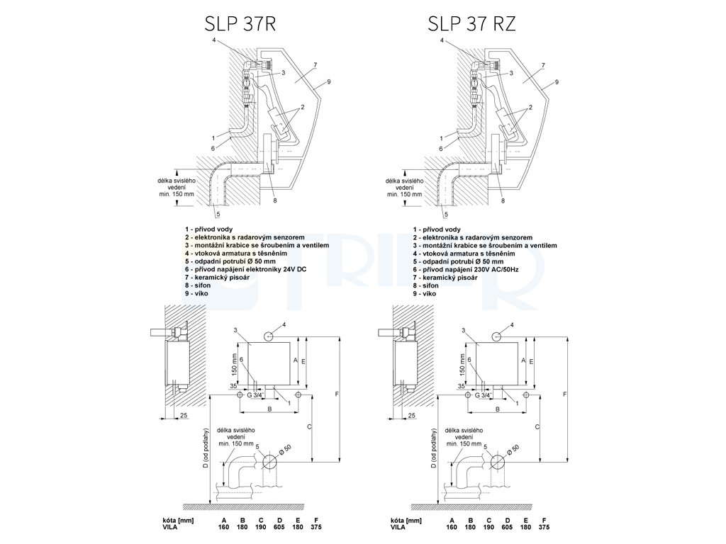 SLP 37 Vila pisoár s radarovým splachovačem SLP 37R