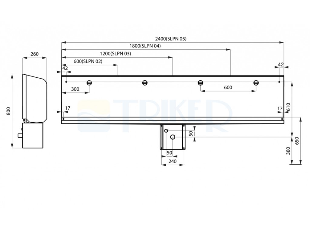 SLPN 02 Nerezový pisoárový žlab 600 mm SLPN 02E s elektronikou, matný