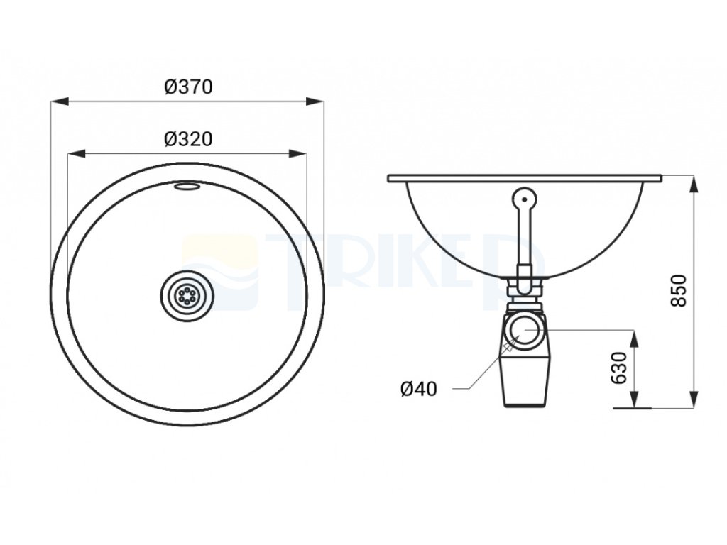 SLUN 44 Nerezové umyvadlo zápustné 37 cm bez otvoru pro baterii SLUN 44, lesklé