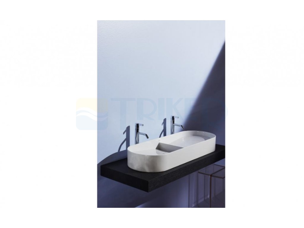 Sonar dvojumyvadlová mísa s vnější strukturou 100 x 37 cm bez otvorů pro baterii, bílá