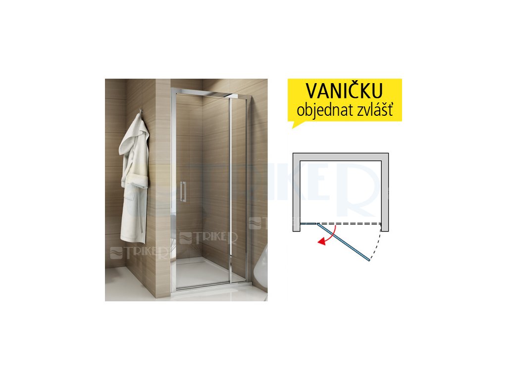 TED sprchové dveře jednokřídlé s pevnou stěnou 900 (875-925 mm) profil:aluchrom, výplň:čiré sklo
