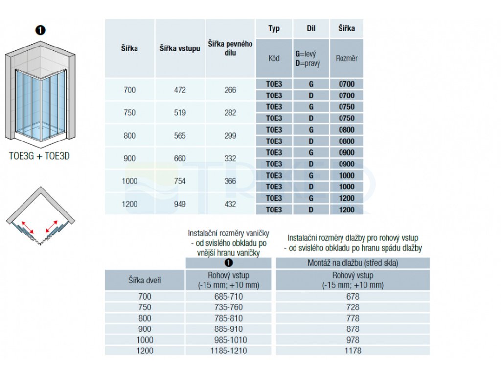 TOE3 sprchový kout s posuvnými dveřmi 700 (685-710 mm) profil:bílý, výplň:durlux (pravý díl)