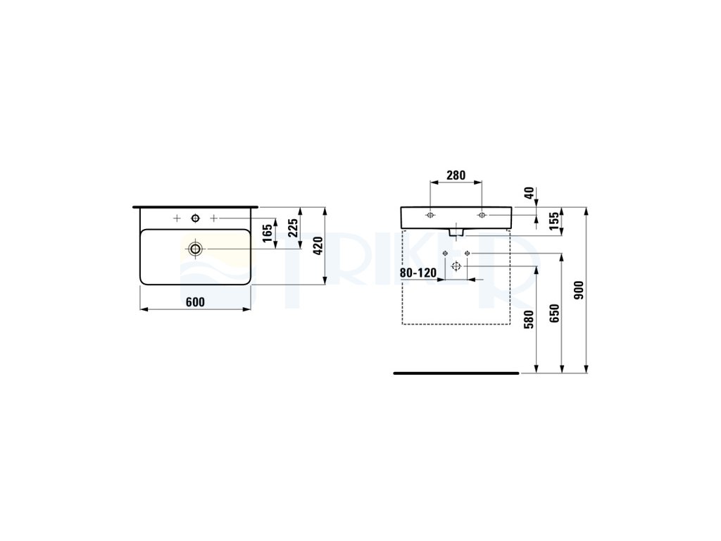 Val umyvadlo 60 x 42 cm bez otvor bez přepadu bílé