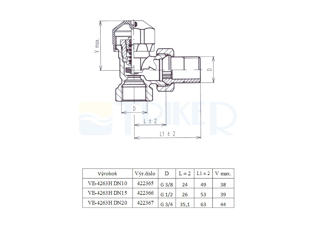 Ventil radiátorový termostatický rohový VE-4263H DN20 3/4"