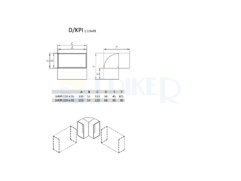 Ventilační koleno vertikální D/KPI ploché 220 x 55 mm