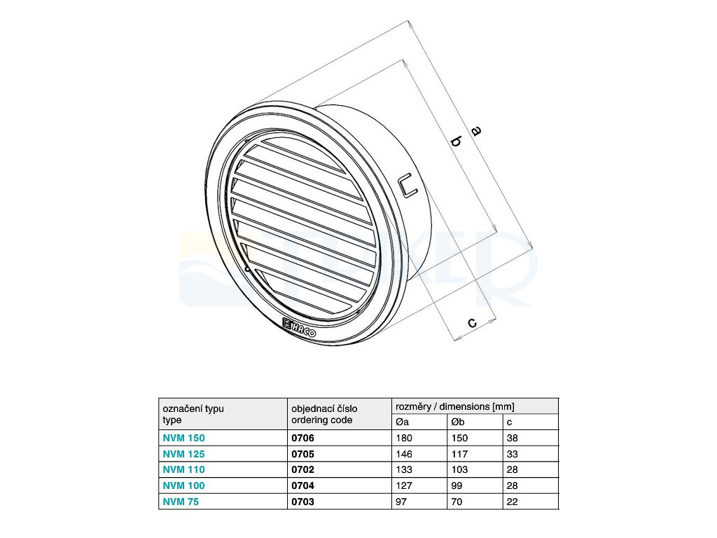 Větrací mřížka NVM nerezová kruhová se síťovinou 75 mm