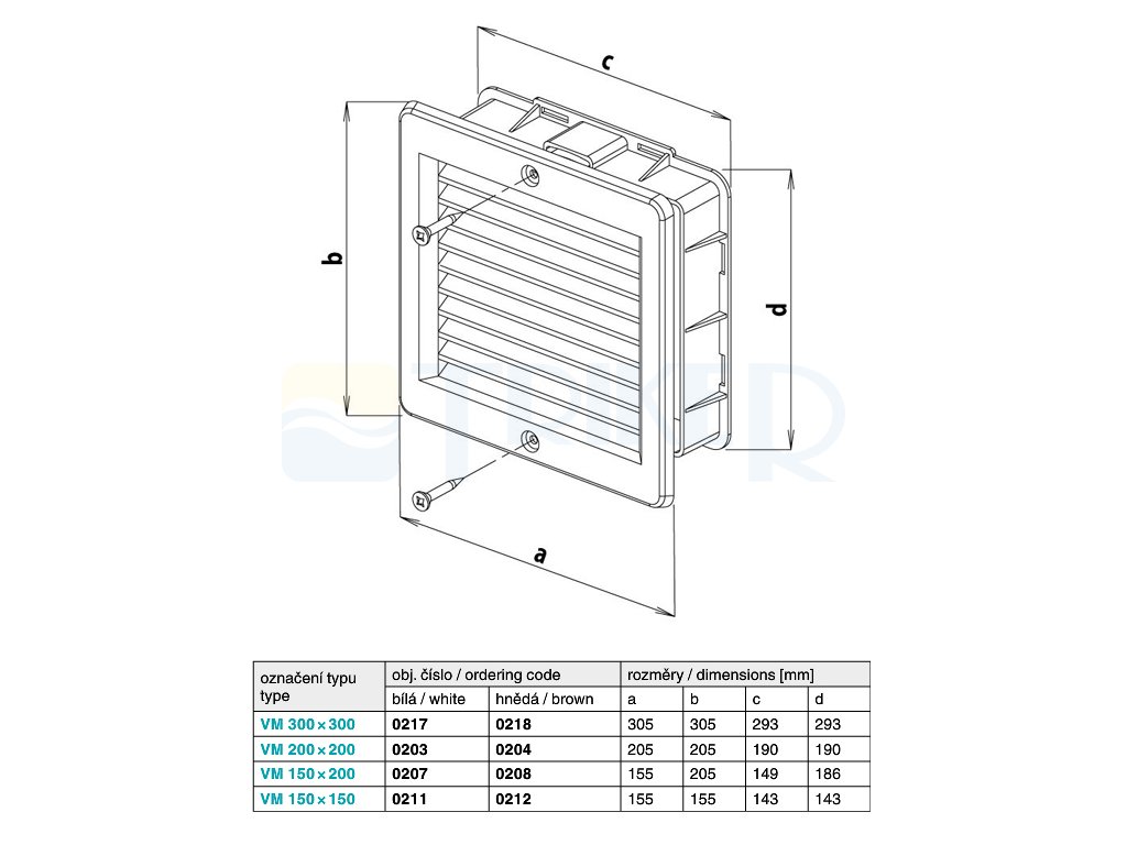 • obsah balení: větrací mřížka, rámeček, vruty a hmoždinky