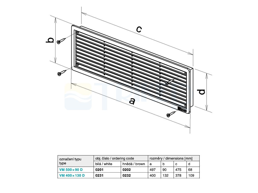 Větrací mřížka VMD dveřní bílá 400 x 130 mm (balení 2 ks)
