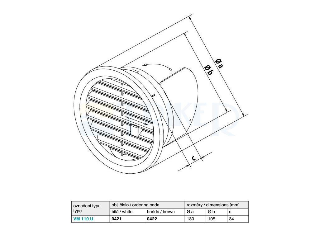 Větrací mřížka VMU kruhová - uzavíratelná bílá 110 mm