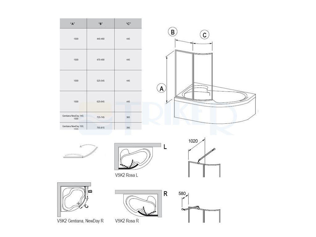 VSK2 Rosa vanová zástěna VSK2 140 R pravá, profil:bílý, výplň:rain