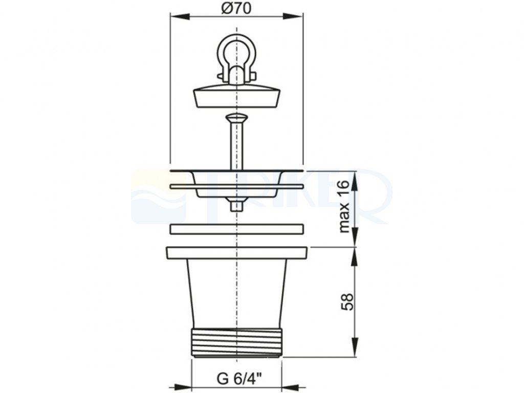 Výpusť dřezová A34 zvýšená s nerezovou mřížkou 70 x 6/4"