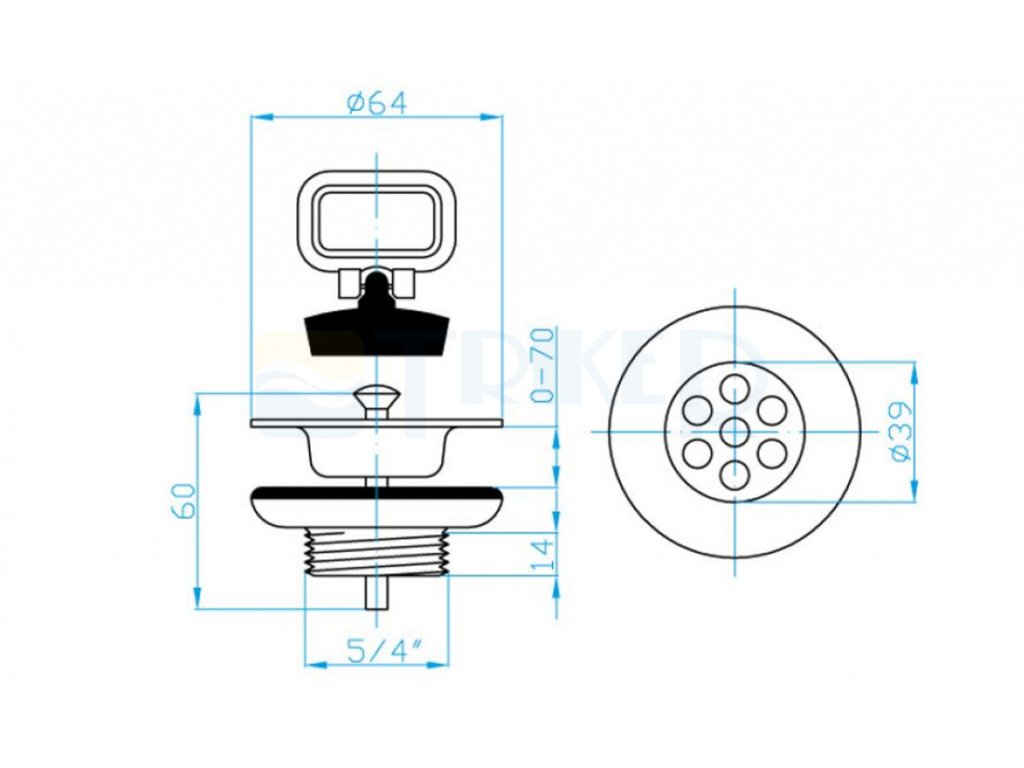 Výpusť umyvadlová EUV0000 64 mm x 5/4", zátka s očkem