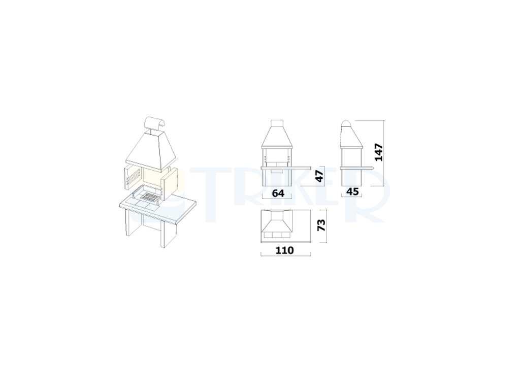 Zahradní krb LAGUNA šedo-bílý vymývaný, douzovací komín