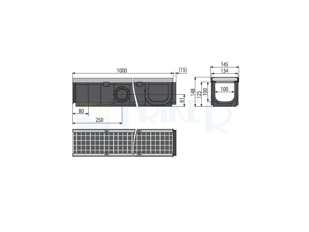 Žlab venkovní AVZ103-R104 100mm s pozinkovaným rámem s pozinkovaným roštem C250