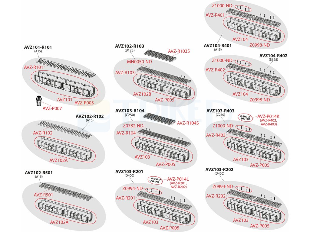 Žlab venkovní AVZ103-R201 100mm s pozinkovaným rámem s litinovým roštem D400